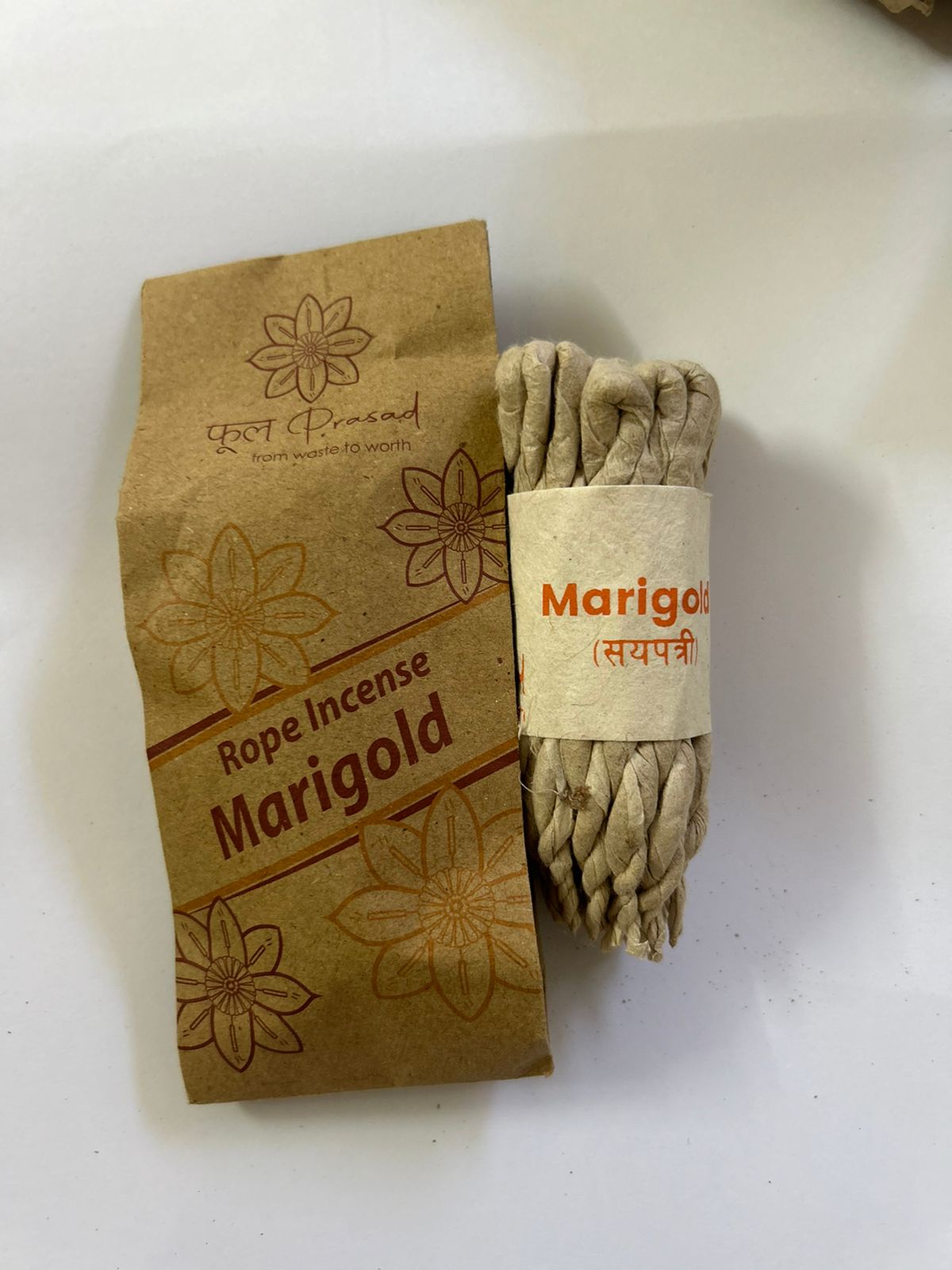 This incense reflects Phool Prasad’s mission of creating value from waste through circular economy principles. By upcycling temple marigold flowers and giving them a renewed purpose, we reduce environmental impact while supporting women led livelihoods. Burning marigold rope incense connects devotion mindfulness and sustainability in one simple ritual.